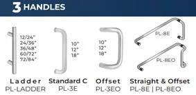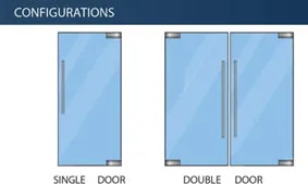 We offer five standard all-glass door styles in heavy tempered and tempered laminated glass thicknesses ranging from 3/8” to ¾”; our P style all-glass door, BP style, F style and A style. Available with continuous horizontal top and bottom rails, corner and patch rails, Euro patch fitting hardware or overhead and floor closer hardware, PRL’s selection of all-glass door styles provide quality and class to meet your needs.