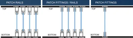 Corner patch rails at pivot points (no lock patch) in a 9 ½” section from any PL-Series rails or PL-Euro series fittings.